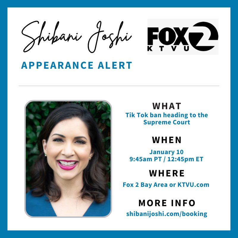 Shibani on Fox 2 San Francisco discussing Tik Tok ban heading to Supreme Court